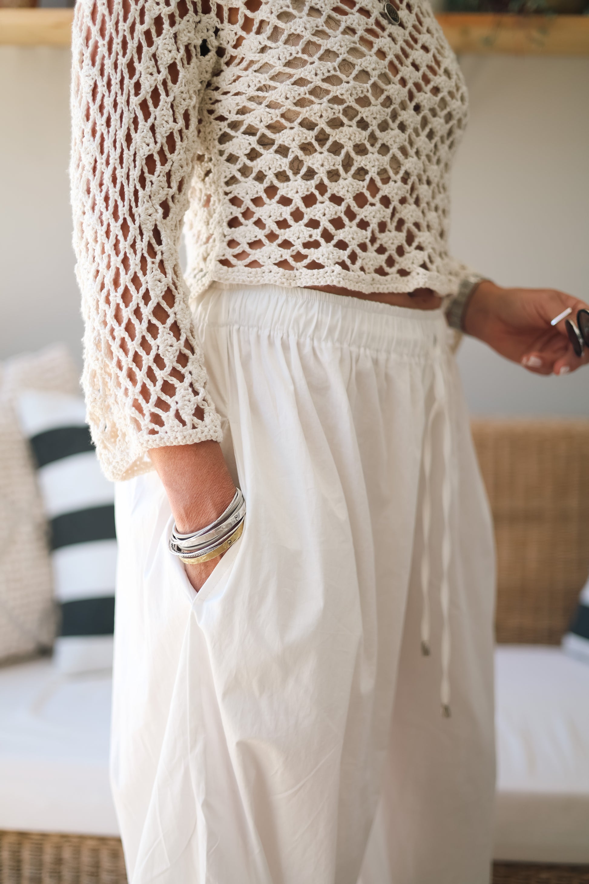 Designed with side pockets and an adjustable elasticated waistband with a drawstring, they offer the perfect customizable fit. Lightweight, breathable, and effortlessly stylish, the Cloud Pants are easy to wear and can be styled in countless ways and therefore the ultimate summer wardrobe essential.